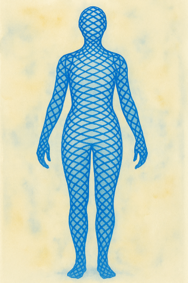 CUERPO MECÁNICO ENERGÉTICO: Estructura en forma de malla, con cuerdas, ubicado dentro del cuerpo físico y que ocupa todo el volumen de éste.